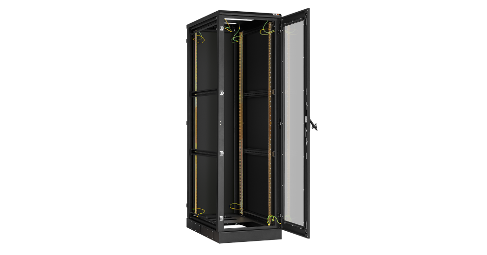 В базовой комплектации шкафа идут 4 монтажных 19” профиля, регулируемых по глубине. Для удобства монтажа и обслуживания установленного в шкафу оборудования конструкцией шкафа предусмотрен доступ с четырех сторон, через переднюю и заднюю дверь, боковые легкосъемные стенки. Боковые стенки шкафа утоплены внутрь каркаса, запираются на защелки и замки с ключами. Передняя и задняя дверь имеет ручку с замком. Передняя/задняя дверь может быть цельнометаллической, перфорированной или со вставкой из ударопрочного, тонированного в массе стекла. . Имеется возможность установить левое/правое открытие двери на этапе сборки, либо же перенавесить двери после сборки шкафа. Угол открытия дверей — 180 градусов. Боковые стенки доступны в сплошном или перфорированном исполнении, а также в цельном либо в двухуровневом исполнении. Для обеспечения эффективного теплообмена и поддержания необходимого температурного режима, в крышу и основание шкафа могут быть установлены вентиляторные блоки. Наличие перфорации также повышает эффективность теплообмена. Ввод кабелей осуществляется через крышу или основание шкафа. Все части шкафа соединены в единый контур проводами заземления. Шкафы могут быть состыкованы между собой с помощью комплекта для соединения. Возможна установка шкафа на регулируемые опоры и ролики одновременно.