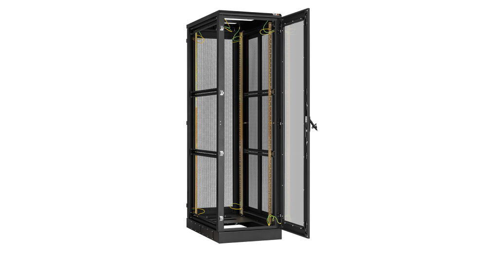 В базовой комплектации шкафа идут 4 монтажных 19” профиля, регулируемых по глубине. Для удобства монтажа и обслуживания установленного в шкафу оборудования конструкцией шкафа предусмотрен доступ с четырех сторон, через переднюю и заднюю дверь, боковые легкосъемные стенки. Боковые стенки шкафа утоплены внутрь каркаса, запираются на защелки и замки с ключами. Передняя и задняя дверь имеет ручку с замком. Передняя/задняя дверь может быть цельнометаллической, перфорированной или со вставкой из ударопрочного, тонированного в массе стекла. . Имеется возможность установить левое/правое открытие двери на этапе сборки, либо же перенавесить двери после сборки шкафа. Угол открытия дверей — 180 градусов. Боковые стенки доступны в сплошном или перфорированном исполнении, а также в цельном либо в двухуровневом исполнении. Для обеспечения эффективного теплообмена и поддержания необходимого температурного режима, в крышу и основание шкафа могут быть установлены вентиляторные блоки. Наличие перфорации также повышает эффективность теплообмена. Ввод кабелей осуществляется через крышу или основание шкафа. Все части шкафа соединены в единый контур проводами заземления. Шкафы могут быть состыкованы между собой с помощью комплекта для соединения. Возможна установка шкафа на регулируемые опоры и ролики одновременно.