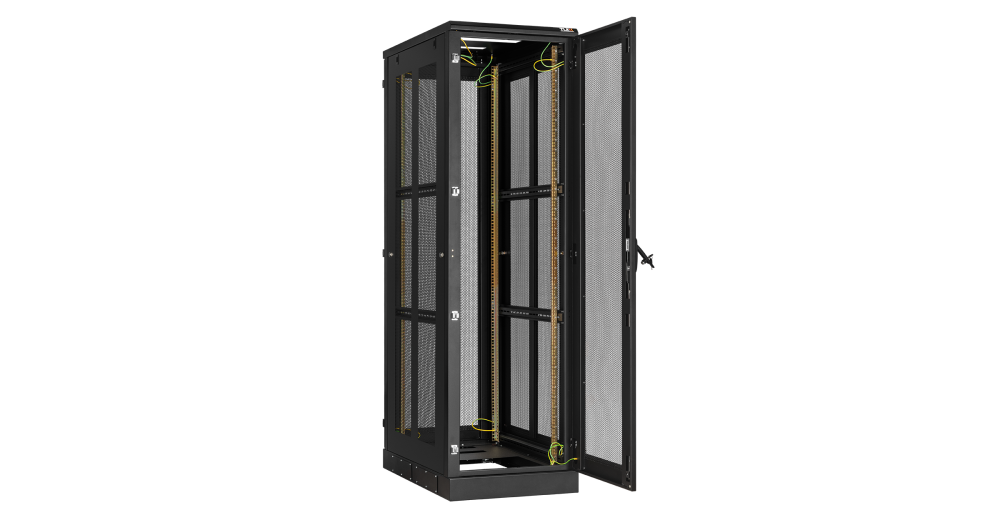 В базовой комплектации шкафа идут 4 монтажных 19” профиля, регулируемых по глубине. Для удобства монтажа и обслуживания установленного в шкафу оборудования конструкцией шкафа предусмотрен доступ с четырех сторон, через переднюю и заднюю дверь, боковые легкосъемные стенки. Боковые стенки шкафа утоплены внутрь каркаса, запираются на защелки и замки с ключами. Передняя и задняя дверь имеет ручку с замком. Передняя/задняя дверь может быть цельнометаллической, перфорированной или со вставкой из ударопрочного, тонированного в массе стекла. . Имеется возможность установить левое/правое открытие двери на этапе сборки, либо же перенавесить двери после сборки шкафа. Угол открытия дверей — 180 градусов. Боковые стенки доступны в сплошном или перфорированном исполнении, а также в цельном либо в двухуровневом исполнении. Для обеспечения эффективного теплообмена и поддержания необходимого температурного режима, в крышу и основание шкафа могут быть установлены вентиляторные блоки. Наличие перфорации также повышает эффективность теплообмена. Ввод кабелей осуществляется через крышу или основание шкафа. Все части шкафа соединены в единый контур проводами заземления. Шкафы могут быть состыкованы между собой с помощью комплекта для соединения. Возможна установка шкафа на регулируемые опоры и ролики одновременно.