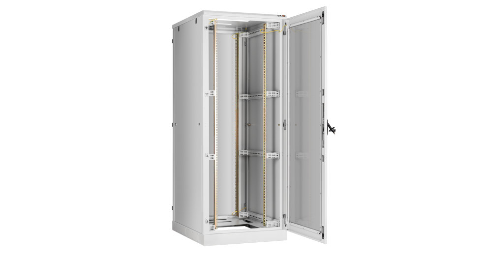 В базовой комплектации шкафа идут 4 монтажных 19” профиля, регулируемых по глубине. Для удобства монтажа и обслуживания установленного в шкафу оборудования конструкцией шкафа предусмотрен доступ с четырех сторон, через переднюю и заднюю дверь, боковые легкосъемные стенки. Боковые стенки шкафа утоплены внутрь каркаса, запираются на защелки и замки с ключами. Передняя и задняя дверь имеет ручку с замком. Передняя/задняя дверь может быть цельнометаллической, перфорированной или со вставкой из ударопрочного, тонированного в массе стекла. . Имеется возможность установить левое/правое открытие двери на этапе сборки, либо же перенавесить двери после сборки шкафа. Угол открытия дверей — 180 градусов. Боковые стенки доступны в сплошном или перфорированном исполнении, а также в цельном либо в двухуровневом исполнении. Для обеспечения эффективного теплообмена и поддержания необходимого температурного режима, в крышу и основание шкафа могут быть установлены вентиляторные блоки. Наличие перфорации также повышает эффективность теплообмена. Ввод кабелей осуществляется через крышу или основание шкафа. Все части шкафа соединены в единый контур проводами заземления. Шкафы могут быть состыкованы между собой с помощью комплекта для соединения. Возможна установка шкафа на регулируемые опоры и ролики одновременно.