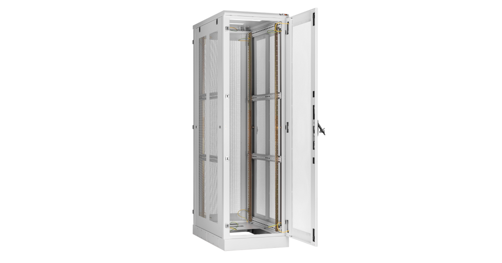 В базовой комплектации шкафа идут 4 монтажных 19” профиля, регулируемых по глубине. Для удобства монтажа и обслуживания установленного в шкафу оборудования конструкцией шкафа предусмотрен доступ с четырех сторон, через переднюю и заднюю дверь, боковые легкосъемные стенки. Боковые стенки шкафа утоплены внутрь каркаса, запираются на защелки и замки с ключами. Передняя и задняя дверь имеет ручку с замком. Передняя/задняя дверь может быть цельнометаллической, перфорированной или со вставкой из ударопрочного, тонированного в массе стекла. . Имеется возможность установить левое/правое открытие двери на этапе сборки, либо же перенавесить двери после сборки шкафа. Угол открытия дверей — 180 градусов. Боковые стенки доступны в сплошном или перфорированном исполнении, а также в цельном либо в двухуровневом исполнении. Для обеспечения эффективного теплообмена и поддержания необходимого температурного режима, в крышу и основание шкафа могут быть установлены вентиляторные блоки. Наличие перфорации также повышает эффективность теплообмена. Ввод кабелей осуществляется через крышу или основание шкафа. Все части шкафа соединены в единый контур проводами заземления. Шкафы могут быть состыкованы между собой с помощью комплекта для соединения. Возможна установка шкафа на регулируемые опоры и ролики одновременно.