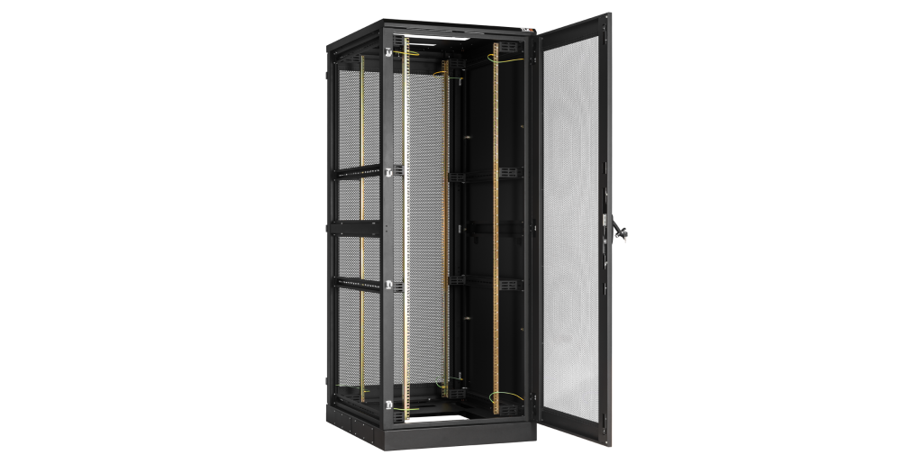 В базовой комплектации шкафа идут 4 монтажных 19” профиля, регулируемых по глубине. Для удобства монтажа и обслуживания установленного в шкафу оборудования конструкцией шкафа предусмотрен доступ с четырех сторон, через переднюю и заднюю дверь, боковые легкосъемные стенки. Боковые стенки шкафа утоплены внутрь каркаса, запираются на защелки и замки с ключами. Передняя и задняя дверь имеет ручку с замком. Передняя/задняя дверь может быть цельнометаллической, перфорированной или со вставкой из ударопрочного, тонированного в массе стекла. . Имеется возможность установить левое/правое открытие двери на этапе сборки, либо же перенавесить двери после сборки шкафа. Угол открытия дверей — 180 градусов. Боковые стенки доступны в сплошном или перфорированном исполнении, а также в цельном либо в двухуровневом исполнении. Для обеспечения эффективного теплообмена и поддержания необходимого температурного режима, в крышу и основание шкафа могут быть установлены вентиляторные блоки. Наличие перфорации также повышает эффективность теплообмена. Ввод кабелей осуществляется через крышу или основание шкафа. Все части шкафа соединены в единый контур проводами заземления. Шкафы могут быть состыкованы между собой с помощью комплекта для соединения. Возможна установка шкафа на регулируемые опоры и ролики одновременно.
