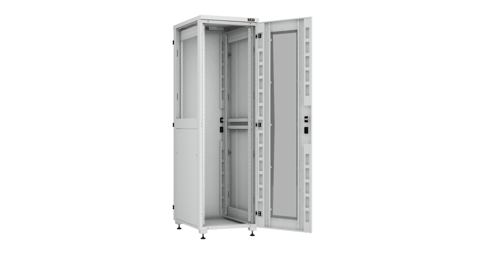 Спереди и сзади имеется дверь. Слева и справа шкафа имеются съемные панели. Ввод кабеля осуществляется через основание шкафа или через крышу, через кабельные вводы, которые закрыты выламываемыми заглушками. Размер отверстий кабельного ввода составляет 270х56мм. Имеются посадочные места в крыше под установку вентиляторного блока. На выбор, можно установить вентиляторный блок на 2 вентилятора или вентиляторный блок на 4 вентилятора, на глубине 1000мм допускается установка вентиляторного блока на 6 вентиляторов. Размеры посадочного места под установку вентиляторного блока в крышу и дно шкафа составляет 270х270мм. Передняя дверь открывается на угол до 180 градусов. Боковые стенки шкафа являются съемными, за счет чего доступ к установленному в шкаф оборудованию может осуществляться с четырёх сторон.