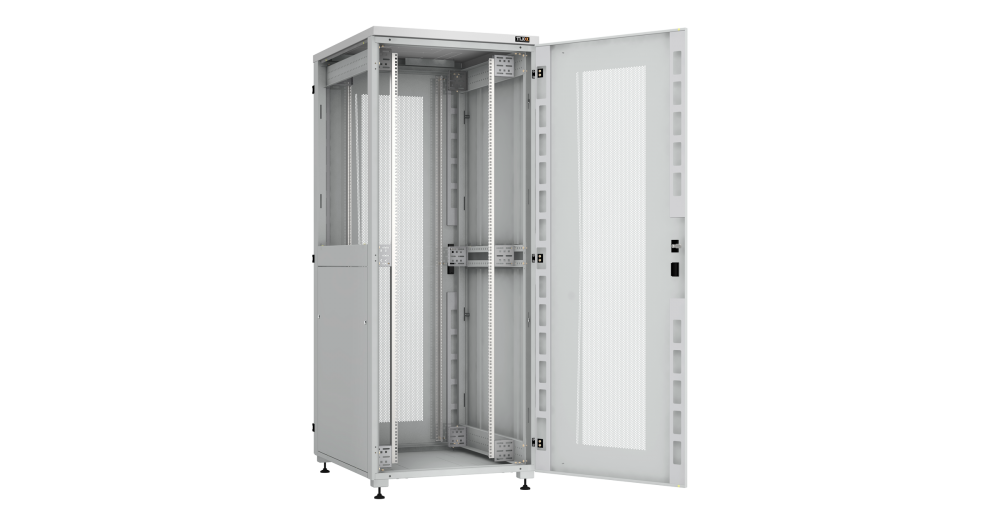 Спереди и сзади имеется дверь. Слева и справа шкафа имеются съемные панели. Ввод кабеля осуществляется через основание шкафа или через крышу, через кабельные вводы, которые закрыты выламываемыми заглушками. Размер отверстий кабельного ввода составляет 270х56мм. Имеются посадочные места в крыше под установку вентиляторного блока. На выбор, можно установить вентиляторный блок на 2 вентилятора или вентиляторный блок на 4 вентилятора, на глубине 1000мм допускается установка вентиляторного блока на 6 вентиляторов. Размеры посадочного места под установку вентиляторного блока в крышу и дно шкафа составляет 270х270мм. Передняя дверь открывается на угол до 180 градусов. Боковые стенки шкафа являются съемными, за счет чего доступ к установленному в шкаф оборудованию может осуществляться с четырёх сторон.