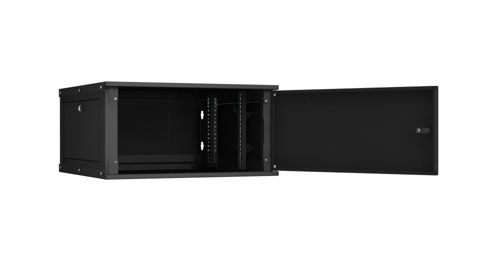 Настенные шкафы серии Lite (TWI) — это рациональное решение для размещения малых объемов телекоммуникационного оборудования, внутри жилых, офисных и производственных помещений. Настенные шкафы используют там, где применение напольных шкафов нецелесообразно. Например, при ограниченной площади помещения или при организации ЛВС с небольшим количеством рабочих мест. Особенностью настенных шкафов серии TWI является: надежная сборная конструкция, для удобства траспортировки, наличие съемных боковых стенок, двери с большим углом открытия позволяют при необходимости осуществлять доступ к оборудованию с трех сторон. Сборно-разборная конструкция шкафа, состоящая из малого набора конструктивных элементов обеспечивает надежный конструктив и простоту сборки. Крепление шкафа к стене осуществляется через монтажные отверстия в задней стенке шкафа. (Крепеж не входит в комплект поставки). Дверь шкафа снабжена замком и может быть выполнена из стального листа с перфорацией или со вставкой из ударопрочного, тонированного в массе стекла. Имеется возможность навесить дверь с правой или с левой стороны. Угол открытия двери — 180 градусов. Для дополнительного удобства монтажа и обслуживания устанавливаемого оборудования, конструкцией предусмотрены легкосъемные боковые стенки, в закрытом положении фиксируются замками. Для установки оборудования стандарта 19", шкаф оснащен одной парой монтажных направляющих в комплекте с юнитовой наклейкой (шкаф глубиной 600 мм оснащается двумя парами монтажных направляющих). Глубину установки оборудования на монтажных направляющих внутри шкафа можно изменять с шагом 25 мм. Перфорация шкафа обеспечивает хорошую вентиляцию установленного оборудования. Возможна установка вентиляторного блока в крышу и основание шкафа, для этого предусмотрены выламываемые заглушки. В шкаф глубиной 350 мм устанавливаются вентиляторные блоки с 1-м вентилятором, а в шкаф глубиной 450 и 600 мм устанавливаются вентиляторные блоки с 2-я вентиляторами. Имеется по 1-му кабельному вводу в крыше и в основании шкафа, выполнены они в виде прямоугольных выламываемых заглушек 270х56 мм. Все токопроводящие части шкафа заземлены между собой. Антикоррозионное покрытие выполнено ударопрочной порошковой краской. Шкаф выполнен в системе несущих конструкций серии 482,6 мм ГОСТ 28601-90 (19-дюймовому стандарту IEC 297). Максимальная допустимая распределенная нагрузка на шкаф серии TWI составляет 40 кг. Степень защиты шкафа составляет IP 20. Шкаф поставляется в разобранном виде, в одной коробке.