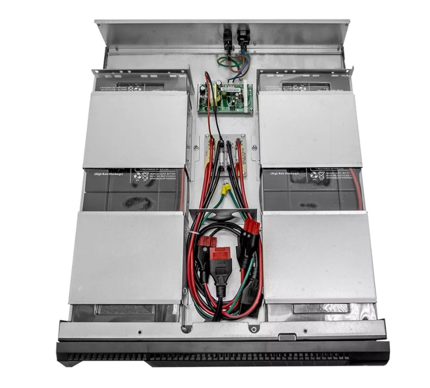 Простота установки - позволяет легко монтировать блок батарей в стойку, высота всего 2U, также возможно монтировать вертикально с использование дополнительного комплекта опор или устанавливать друг на друга.